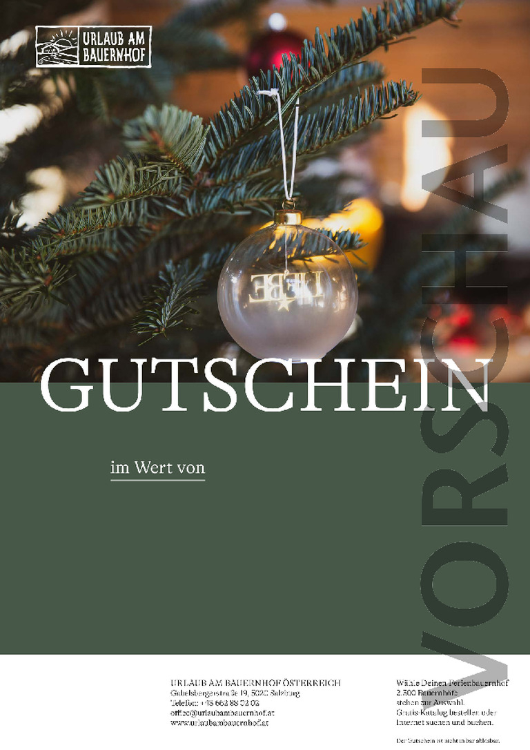 Ein Gutschein für Urlaub am Bauernhof ist das perfekte Geschenk für unvergessliche Erlebnisse. Ob Erholung in der Natur, Genuss am Winzerhof oder Abenteuer auf der Alm – hier findet jeder seinen Traumurlaub!